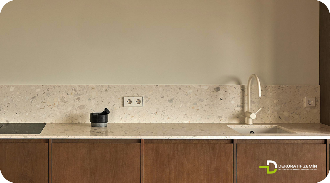 Kontrollü üretim süreci sayesinde her panel veya parça aynı renk tonuna, dokuya ve yüzey kalitesine sahiptir. Geleneksel yerinde döküm terrazzo’ya göre daha homojen bir görünüm sunar. Üretim esnasında milimetrik toleranslarla çalışılır, bu da montaj sırasında mükemmel uyum sağlar.