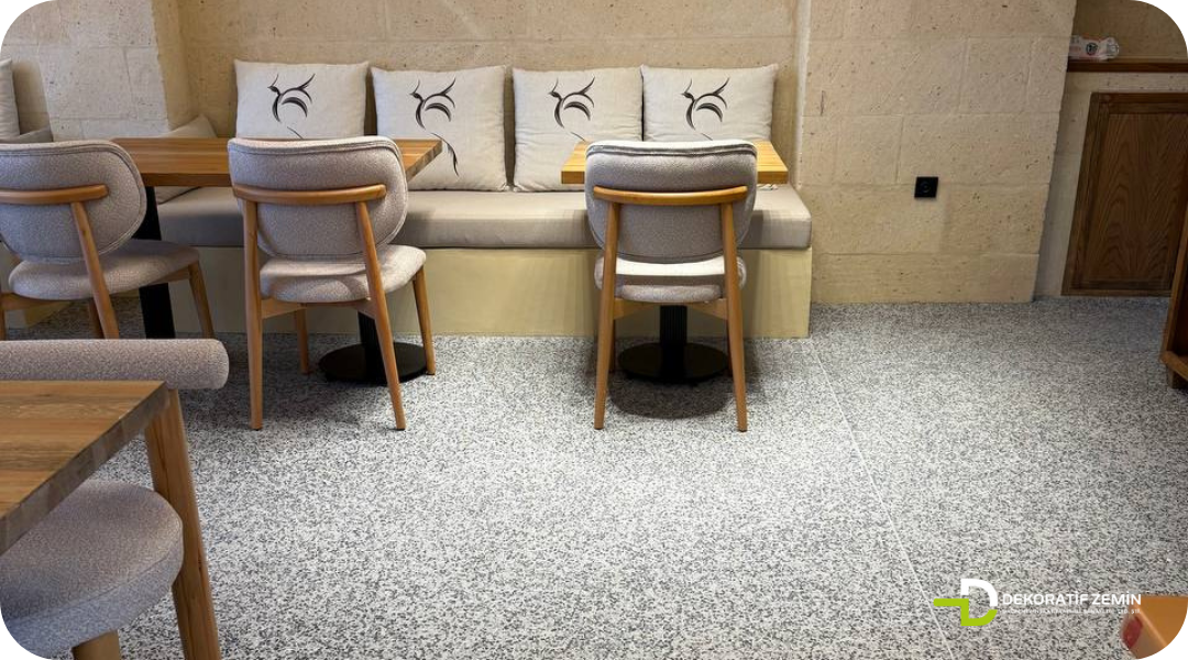 Reçine esaslı bağlayıcı ile doğal agregalar, renkli cam ya da mermer gibi dekoratif parçacıkların karıştırılıp zemine uygulanmasıyla elde edilen yüksek performanslı bir zemin kaplama çözümüdür. Yaklaşık 8-10 mm arası bir kalınlıkta uygulanan bu sistem, tasarım özgürlüğü, uzun ömür ve hijyen gibi birçok avantajı aynı anda sunar.